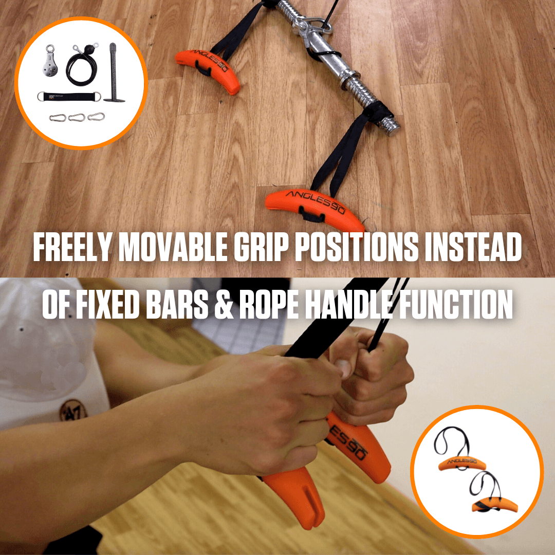 The A90 Cable Pulley is smaller than standard machines, requires less space, can basically be attached anywhere, comes with a better grip, and can be used with any kind of heavy objects (like car tires, trash bins or anything you can think of) when weight plates are not available.